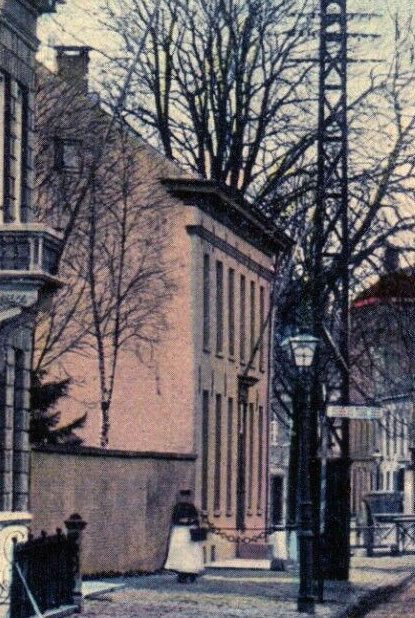 On the Stratum side of the bridge, the first house was (yet another) stately 19th century villa, demolished in 1957. The apartment building that replaced it, De Bleek, was completed in 1979. The building just to the north of the bridge on Stratumseind was also demolished, but the white building next door is still there. Eindhoven replaced the aging bridge over the little Dommel River in 1955—you can see the difference in the ironwork.