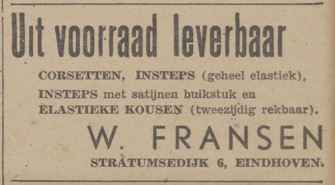 Postcard vs. Photo, Stratumsedijk No, 6 | 1977, Loek Tangel, Wikimedia Commons | 2013, Wikimedia Commons | Bakery help wanted, 1964 | A. Coppens bakery wins a prize, 1958 | Fransen ad, 1948 | exhibition in the building, 1958 | Fransen ad, 1964
