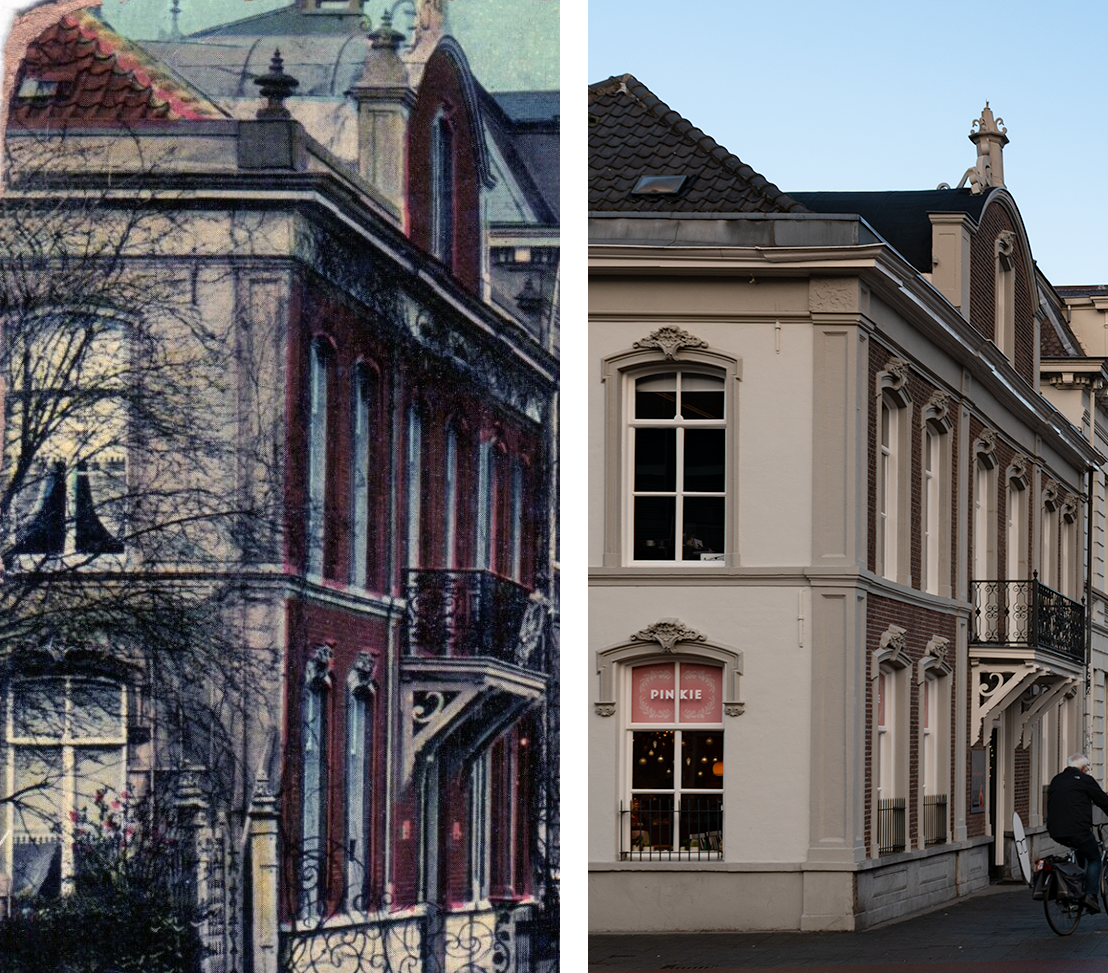 Stratumsedijk Number 6, built in 1860 in an eclectic historicist style, spent decades as a bakery—specifically A. Coppens—and also served as the main office for medical device company Fransen Bosman, a diabetes management company that (surprisingly) still exists as an independent firm today, although they dropped the Fransen. With its arched gable and decorative plasterwork, Stratumsedijk No. 6 is an Eindhoven municipal monument.