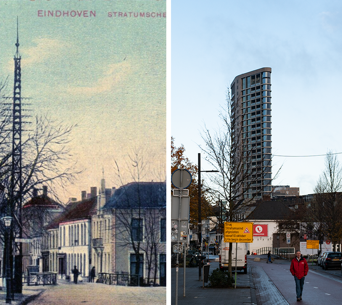 When this postcard was published around 1907, Stratum was technically still an independent town on the other side of the Dommel River—Eindhoven officially annexed it in 1920. The area—once the site of the medieval Stratumse Watermill and Stratumse Poort gate into Eindhoven—developed into a fashionable villa district in the 1800s, but over the last few decades Stratumsedijk turned into a bit of extension of Stratumseind, Eindhoven’s nightlife district, particularly known for its gay bars.
