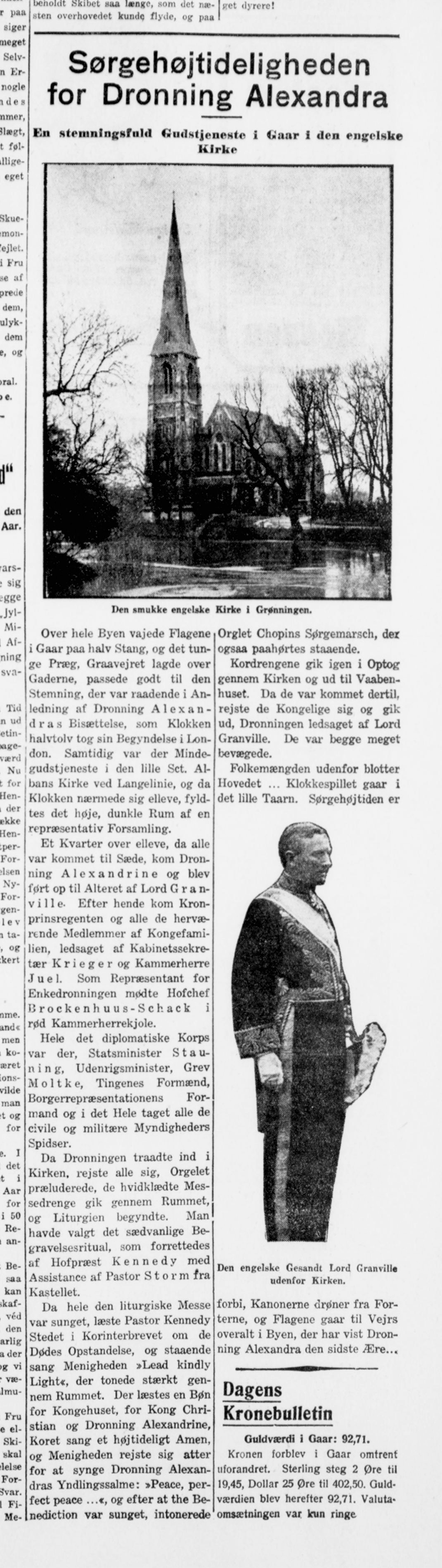 The Princess of Wales and the Danish royals attended the cornerstone laying in 1885, and the church was dedicated in 1887. The church, understandably, had an international bent—I chuckled when I saw that it held a memorial service after President Warren G. Harding died in office in 1923. Two years later, they'd hold a more meaningful memorial when their patron, Queen Alexandra, died in 1925.
