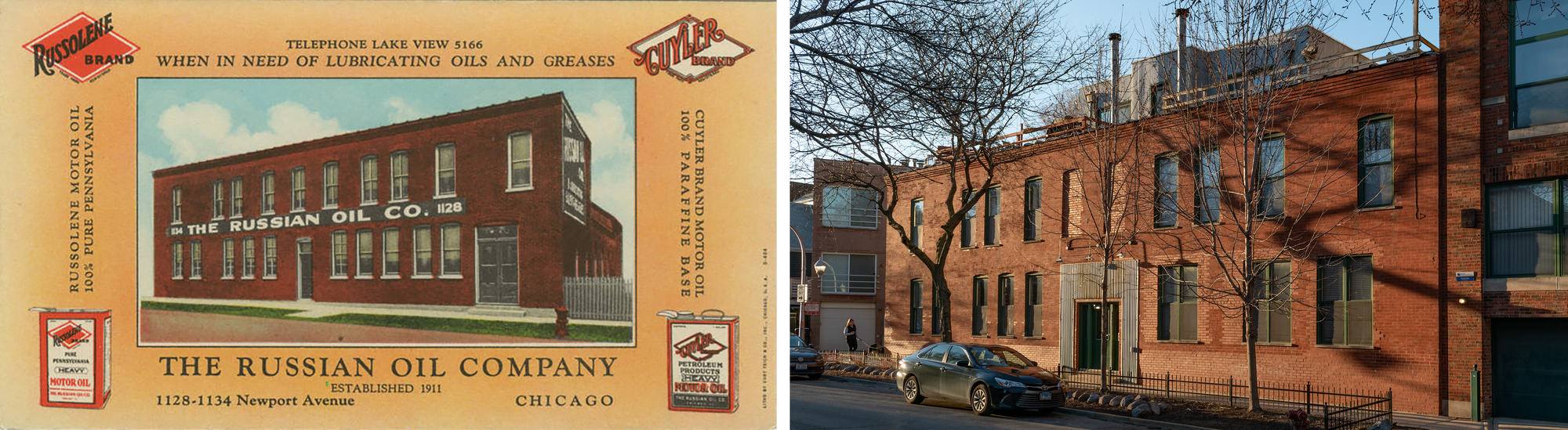 A plucky little survivor that outlived the railroad that brought it to life, this little manufacturing building from 1894 abutted the now built-over Chicago & Evanston branch of the Milwaukee Road railroad that once wound its way through Lakeview. The Gunderson Manufacturing Company undoubtedly selected this site for its rail access when they built this facility in 1894. A bunch of light manufacturing companies cycled through the building over almost a century, including the Russian Oil Company from the 1920s to the 1970s, but service on this section of the railroad ended in the 1980s. With industry leaving Lakeview and the neighborhood gentrifying, there were only two realistic options here: demolition or a loft conversion. Thankfully, we got the latter–Kenneth Schroeder of Schroeder Murchie Associates (now SMNG A) converted it into residential lofts in the late 1980s.