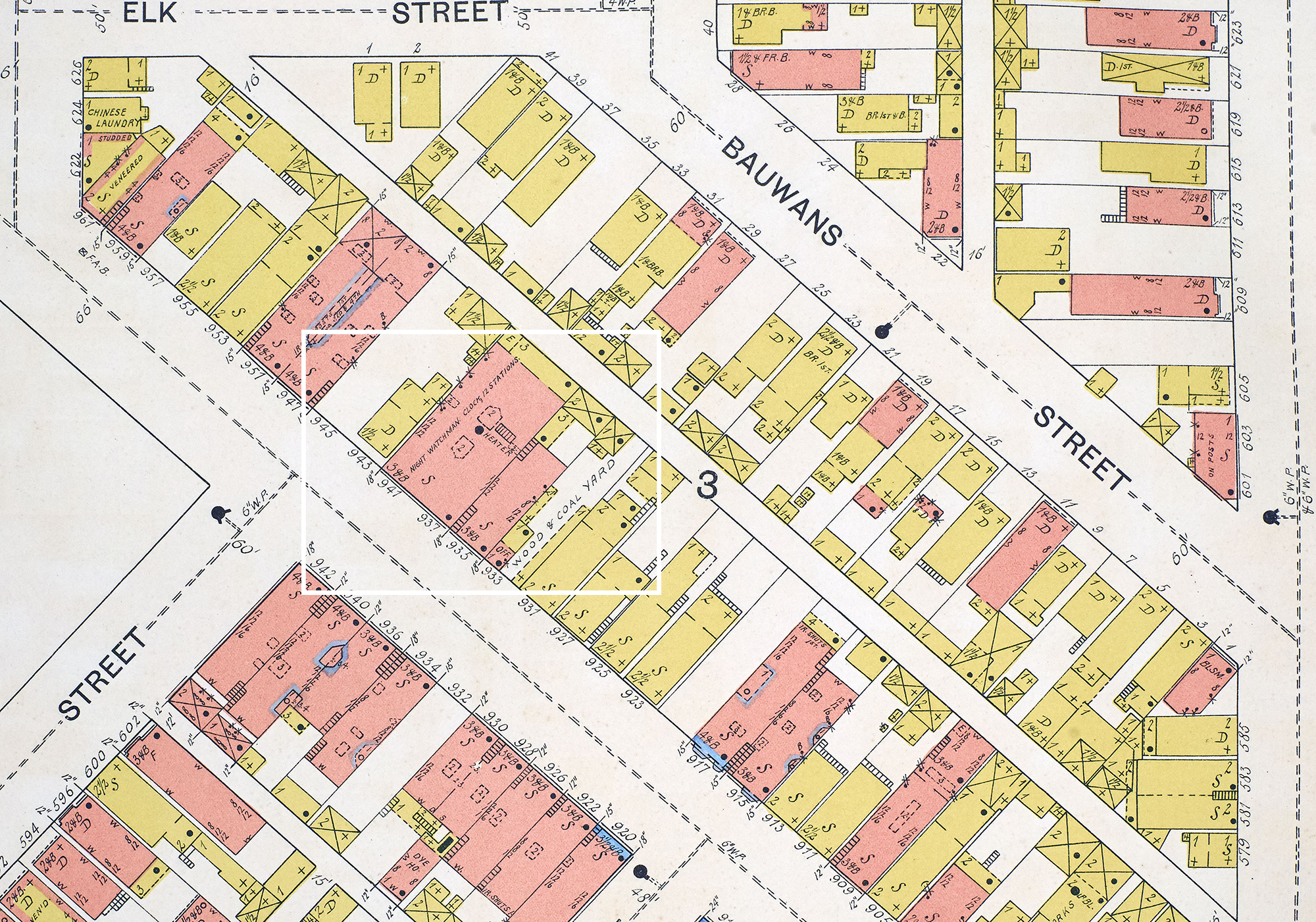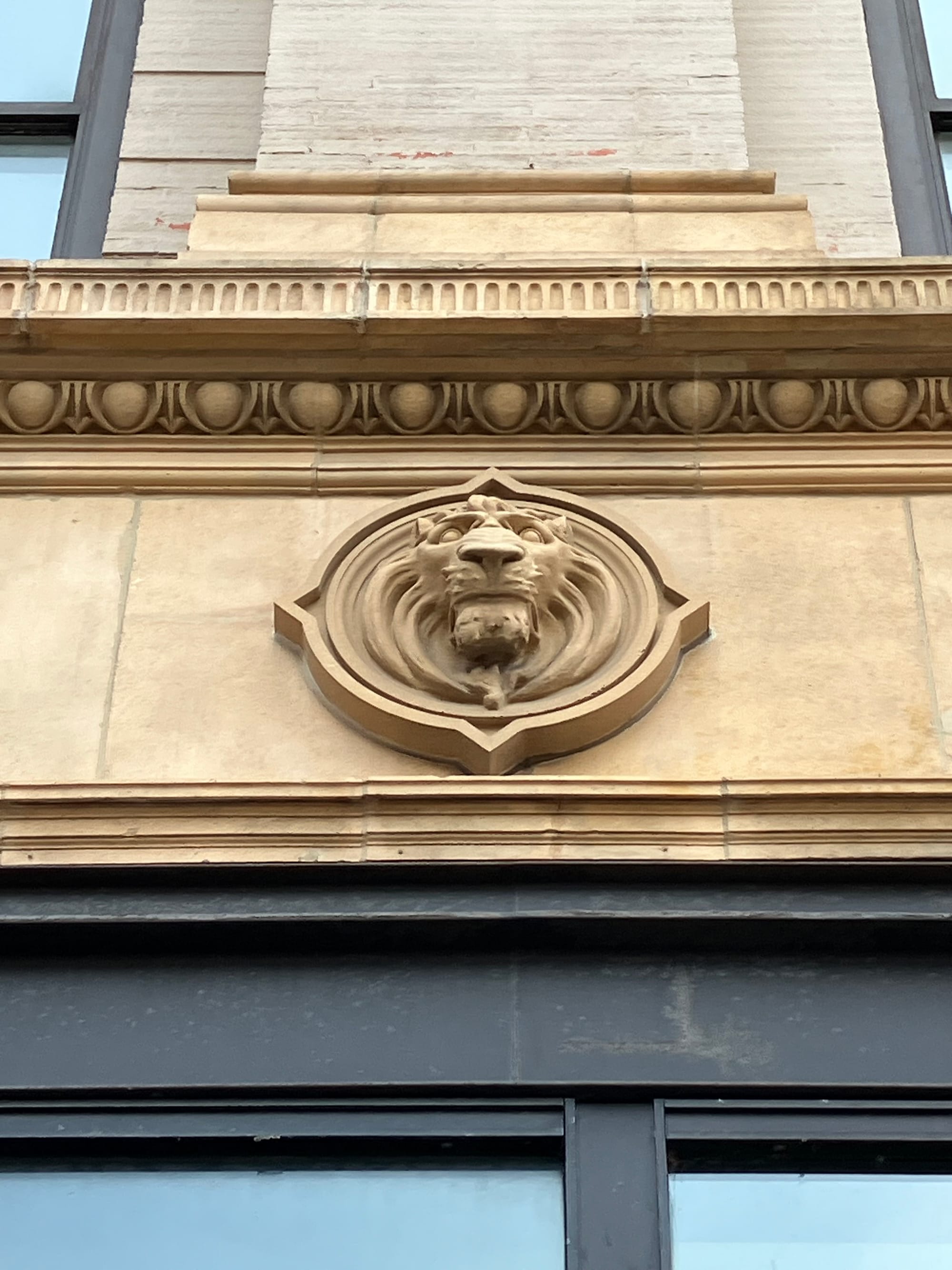 1892 fire insurance map | 1901 and 1902 articles about the additions | 1911 streetscape sketch | 1914 Sanborn Fire Insurance map | 1920s | 1926 ad | Lions on the facade, 2025