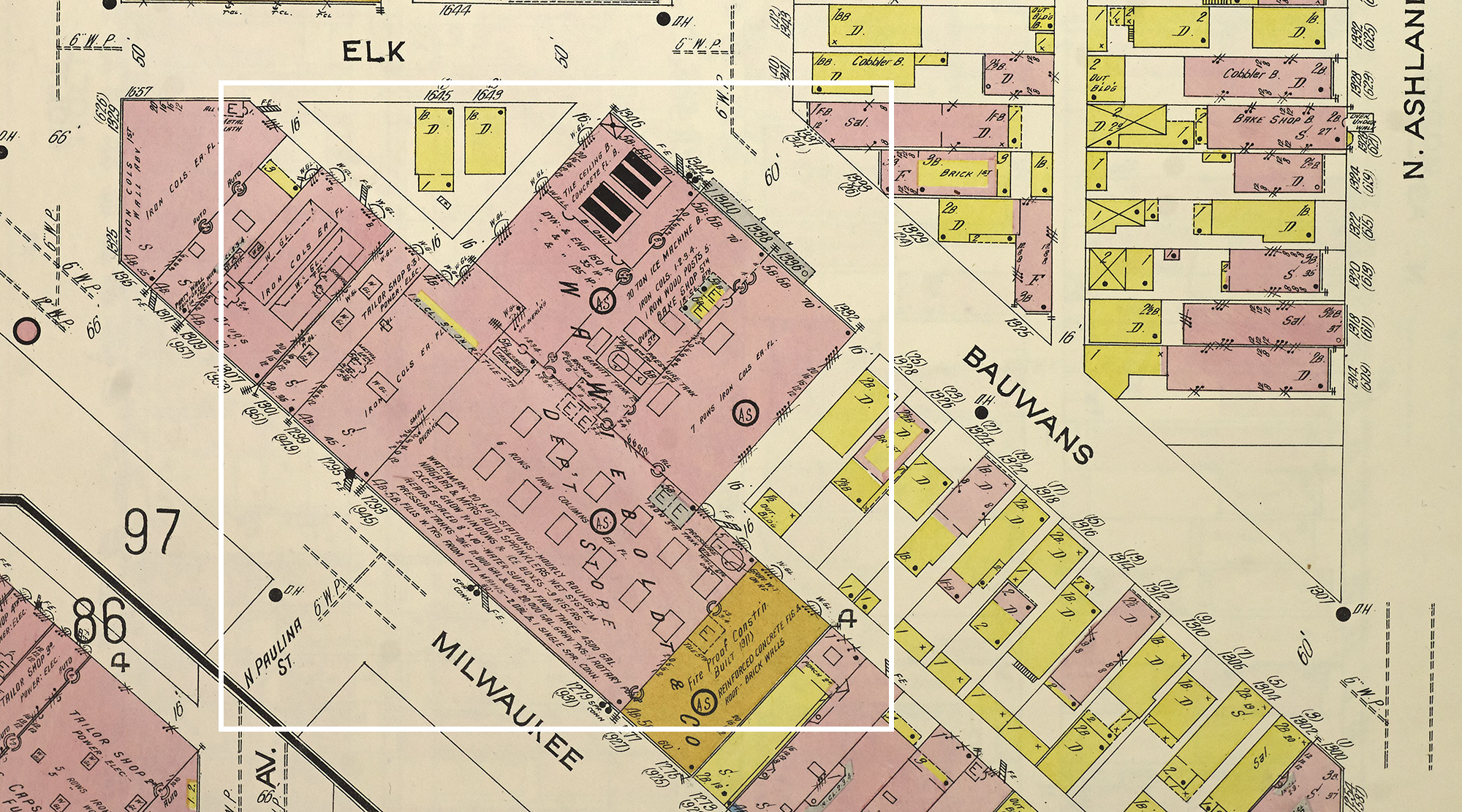 1886 fire insurance map | 1892 fire insurance map | 1914 fire insurance map | 1938 aerial, Illinois State Geological Survey | 1950 fire insurance map | 1970, 1975, 1980, 1985 aerials, Chicago Metropolitan Agency for Planning Imagery Explorer