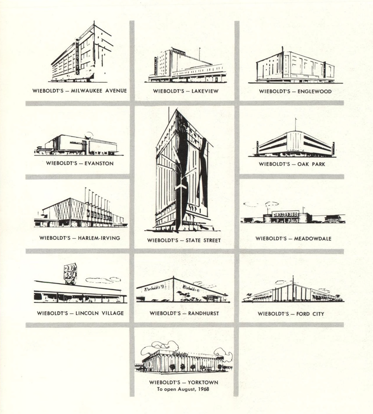 White flight, urban renewal, and changing shopping habits broke Wieboldt’s original business model by the 1960s, and the company tried to outrun those trends by expanding to the suburbs and—more shockingly—into the Loop (they acquired Mandel Bros. department store on State Street).