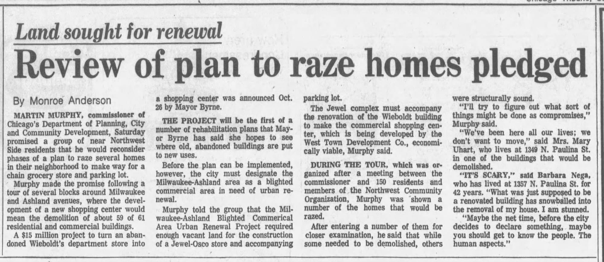 ...man, I’d be so angry if the city eminent domain'd my parents’ or grandparents' two/three flat in Wicker Park for $100k (a hundred-year-old home one block north on Paulina is currently for sale for $900k).
